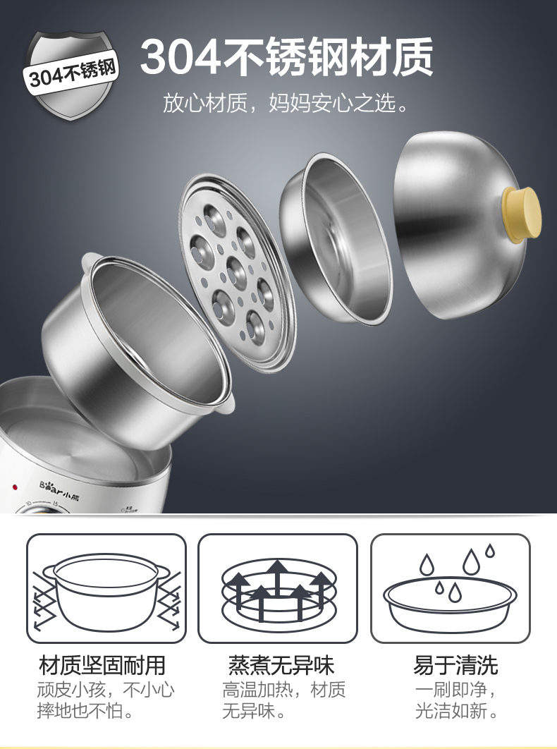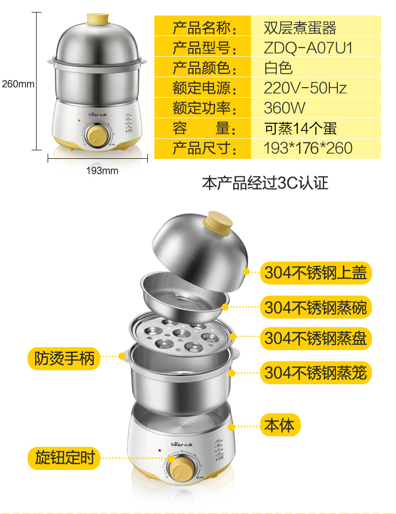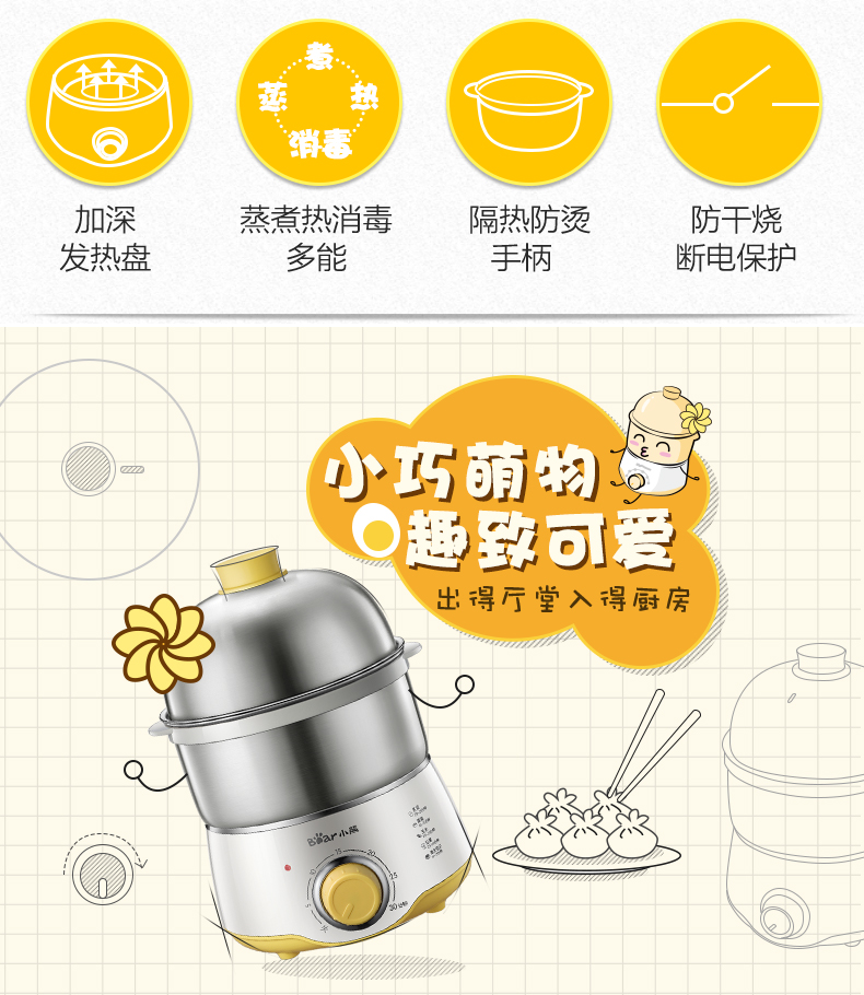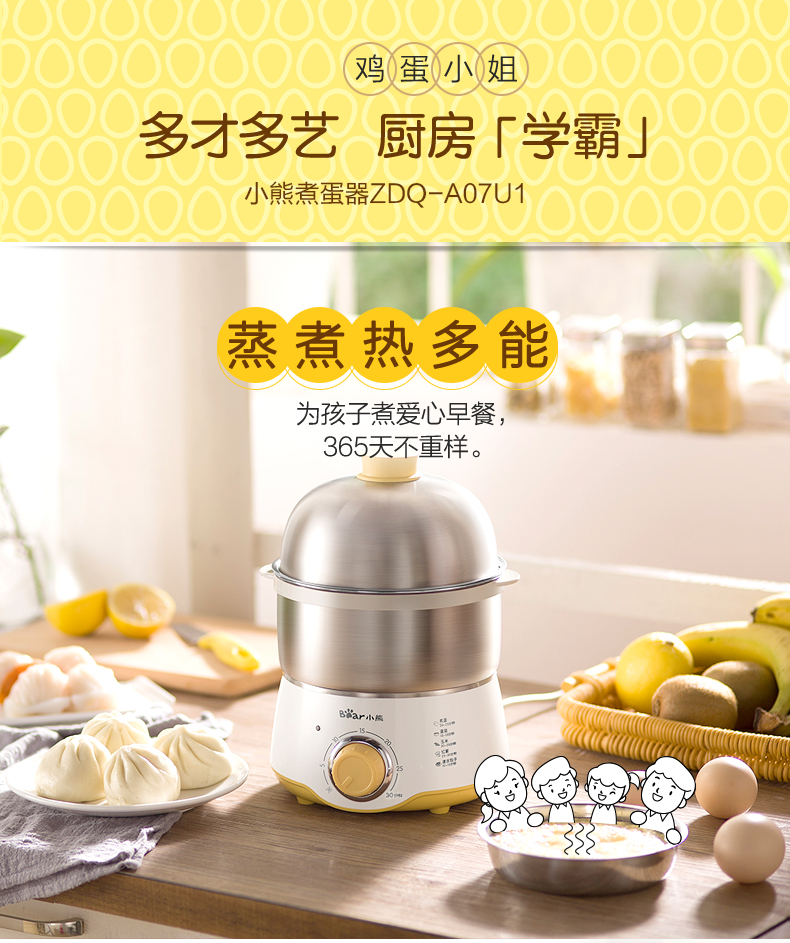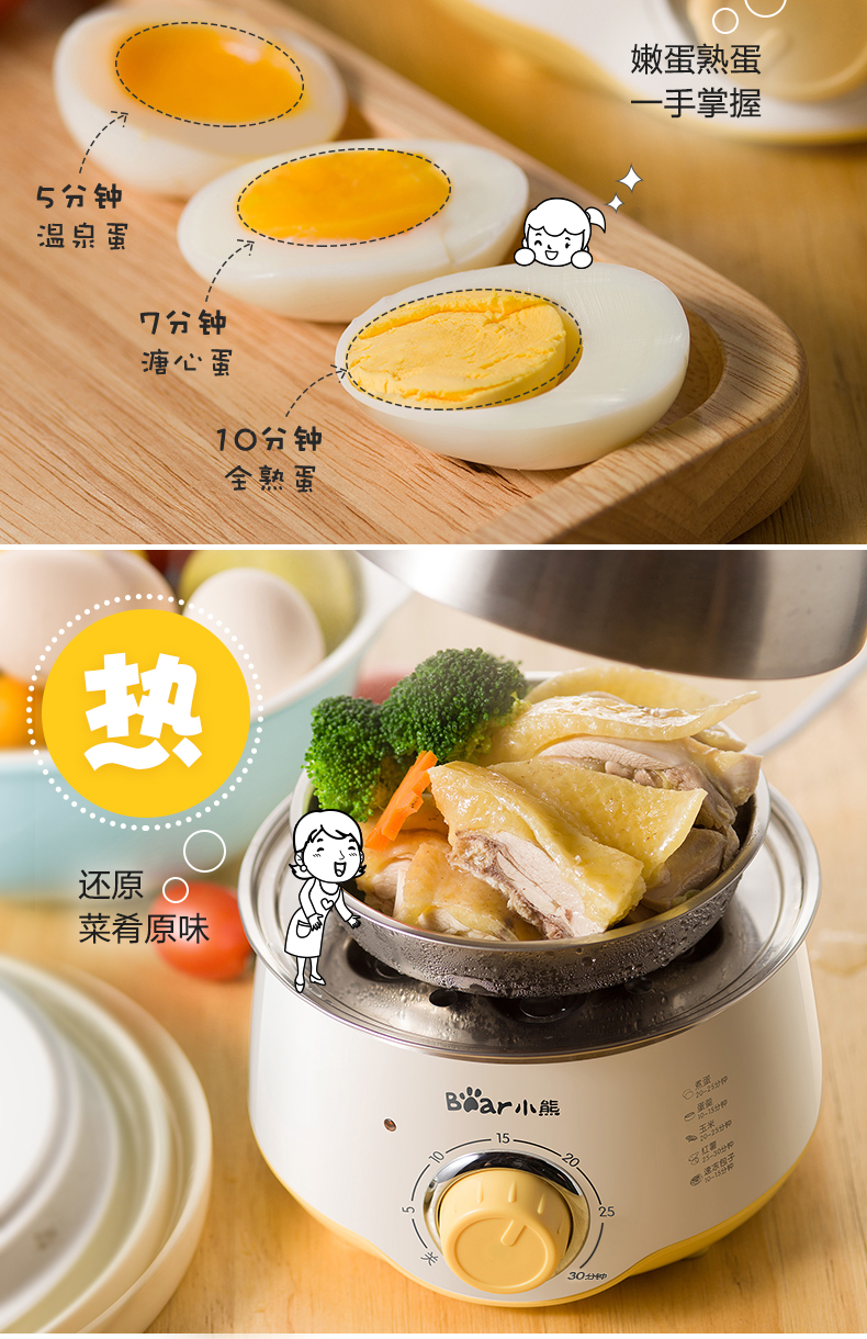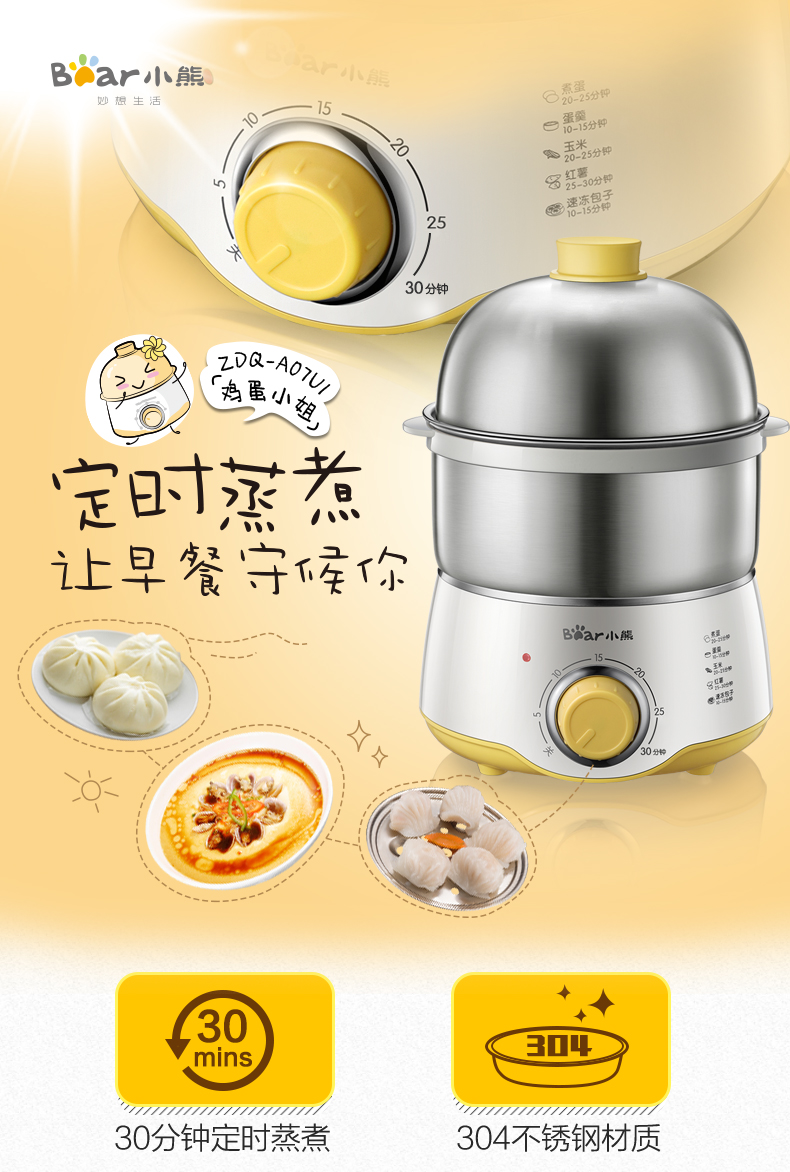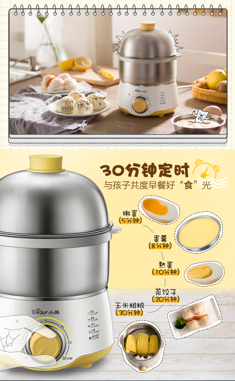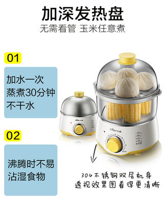 小熊蒸蛋器家用双层定时早餐神器多功能早餐机小型煮蛋器小熊电器