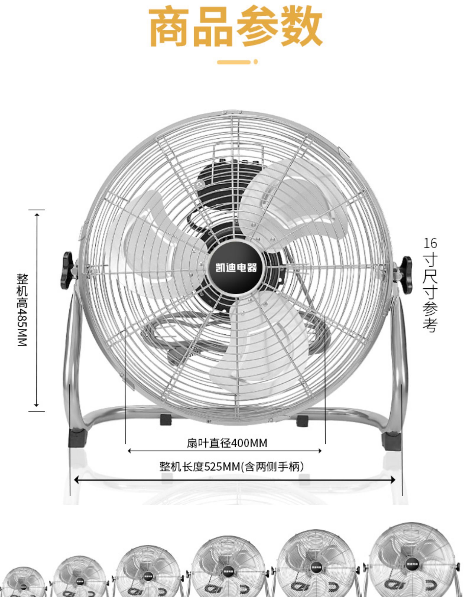 凯迪强力电风扇大功率工业风扇落地扇家用商用台式趴地扇坐爬地扇