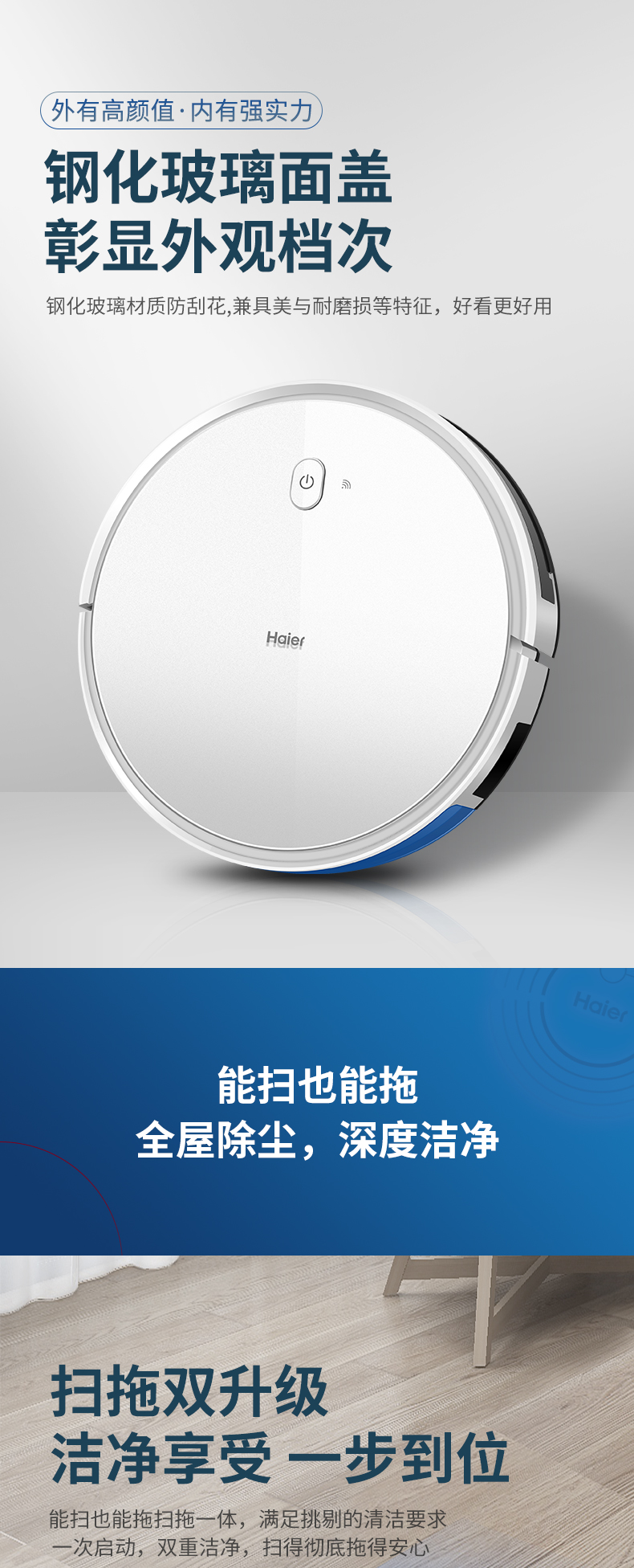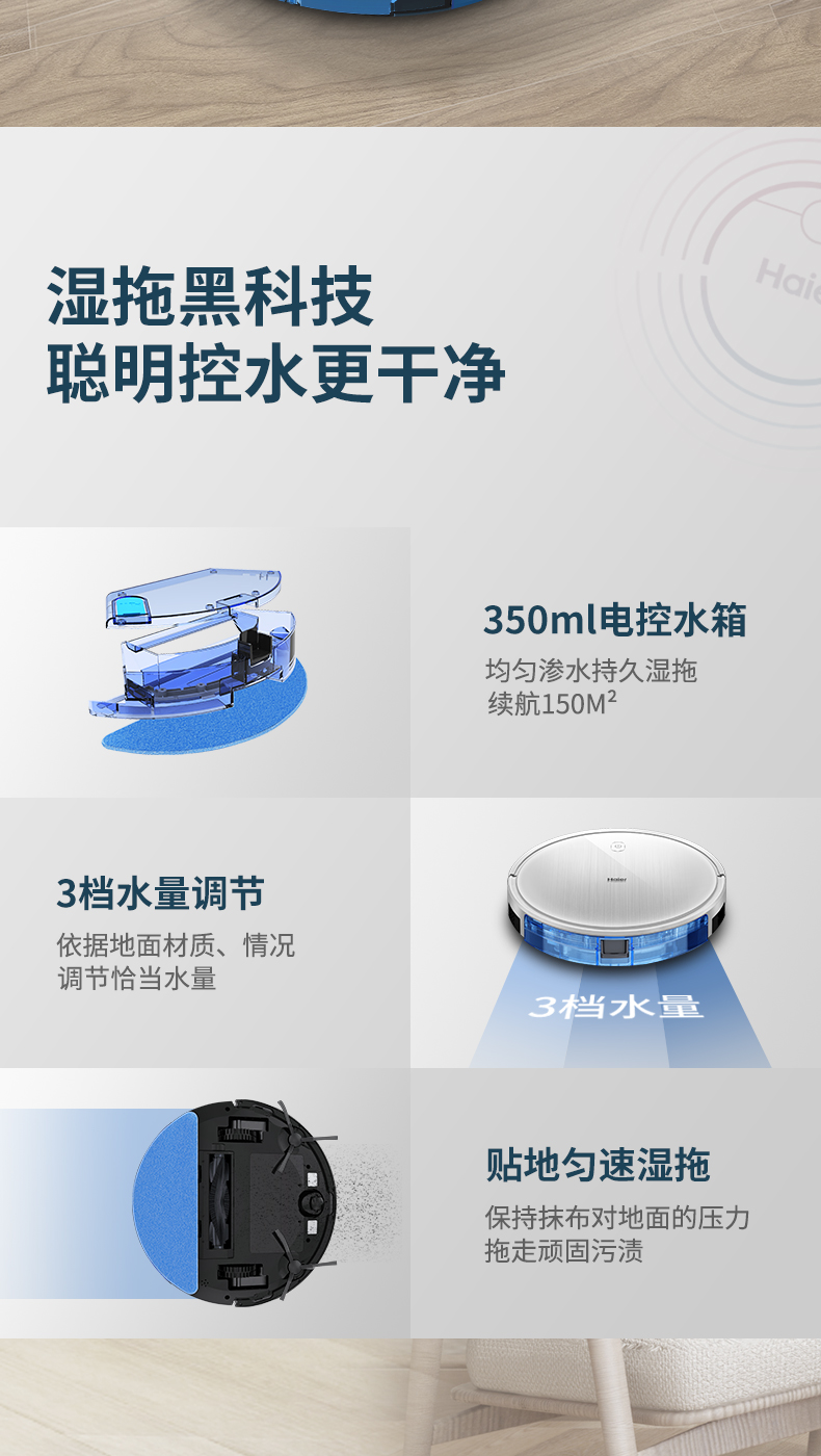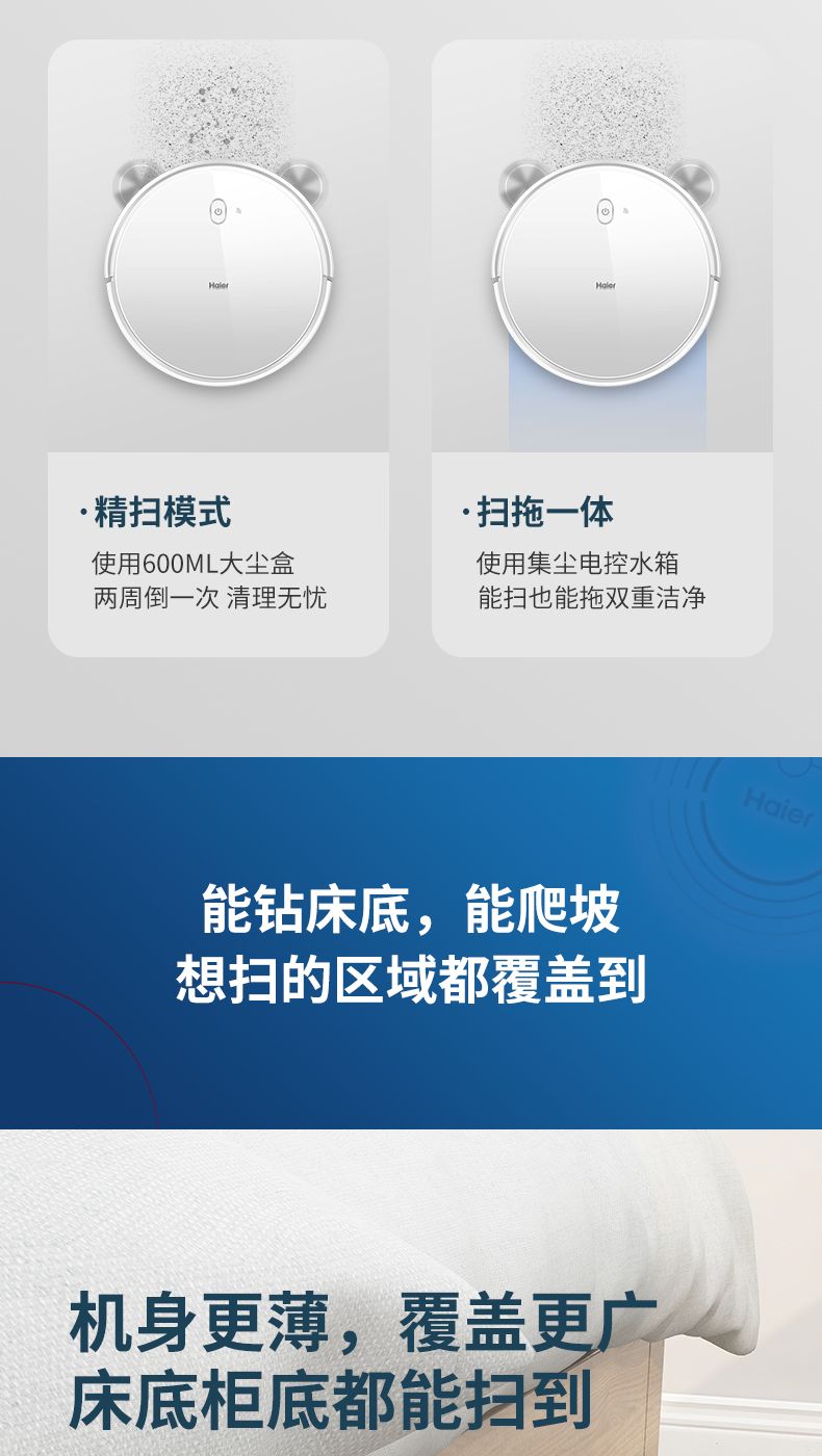 海尔扫地机器人家用全自动智能扫拖一体机拖地吸尘三合一吸小米粒
