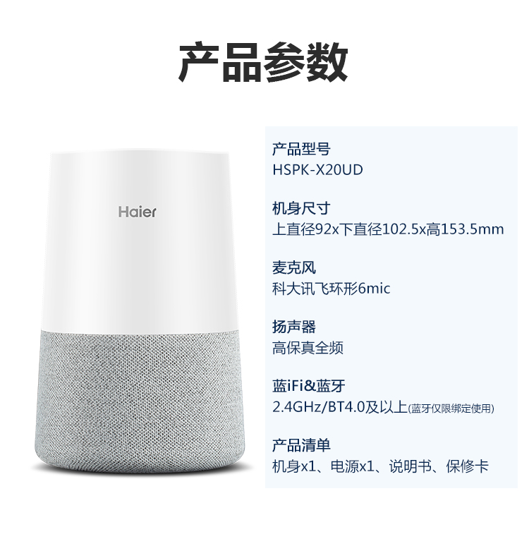 Haier/海尔 AI音箱wifi人工智能音箱家用声控家居蓝牙音乐音响X20