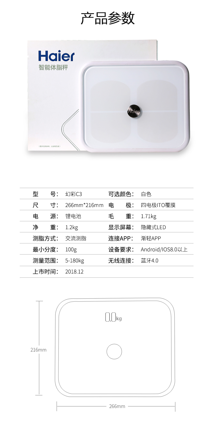 海尔智能体脂秤专业精准人体重秤电子称家用充电测脂肪健康减肥瘦身