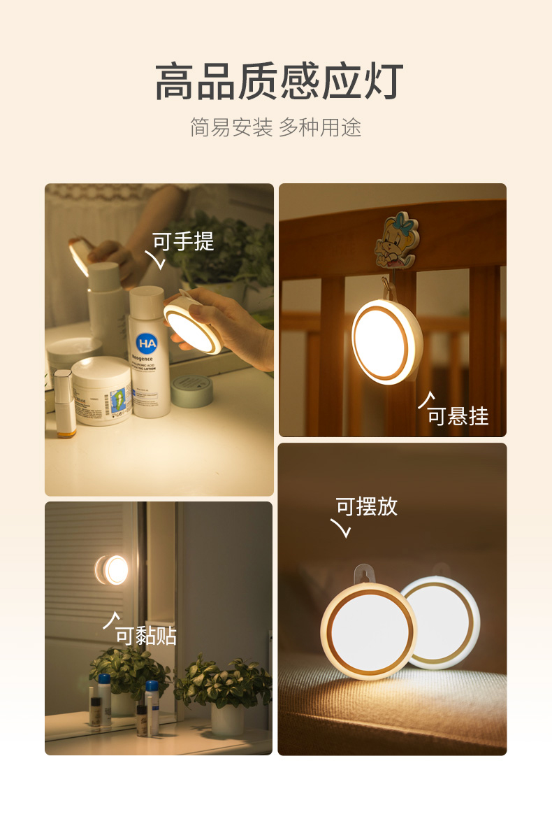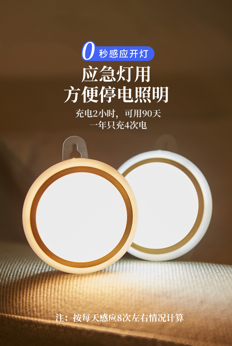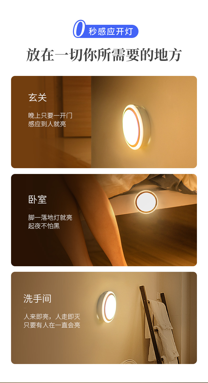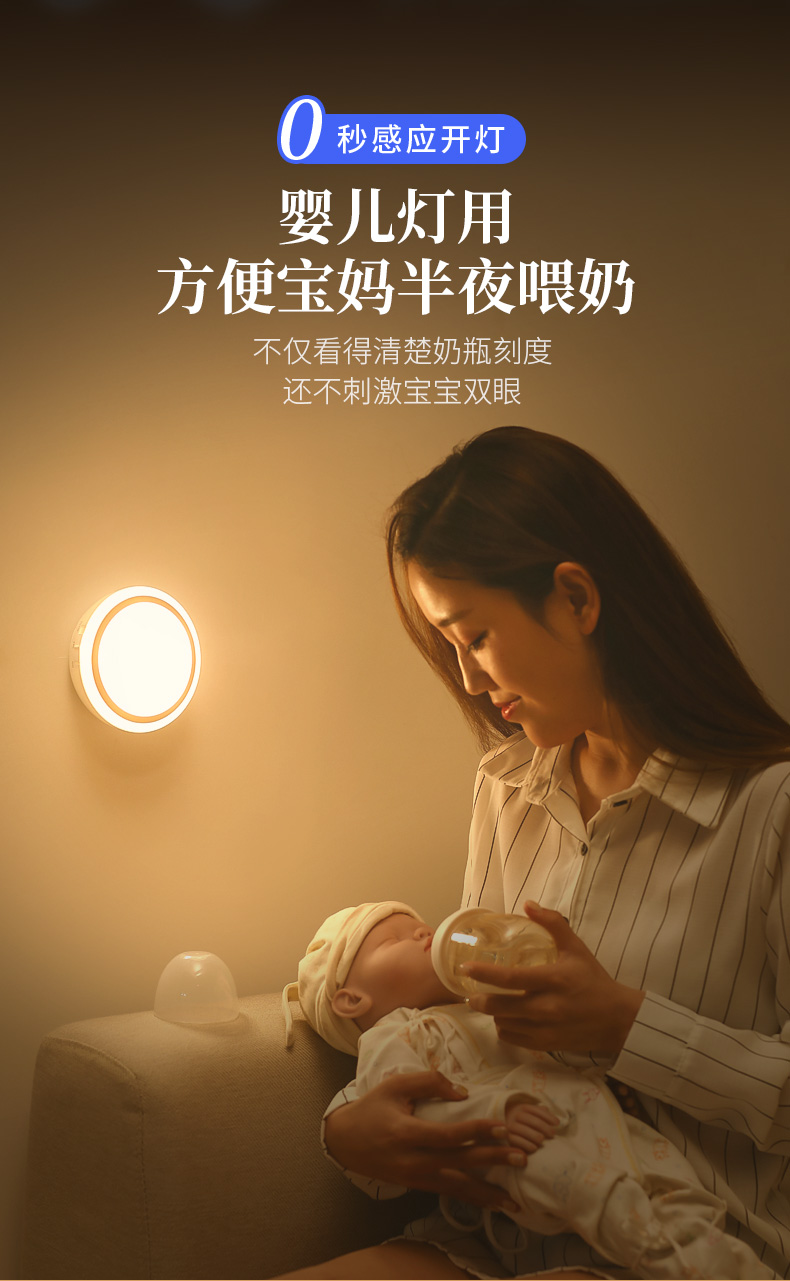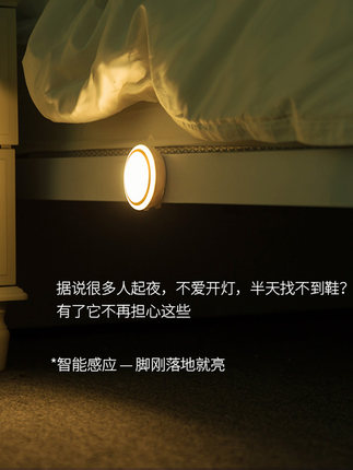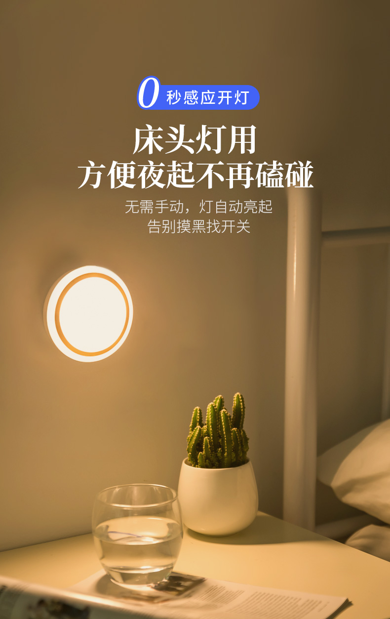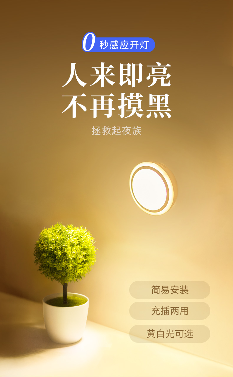 智能人体感应LED小夜灯充电式款声控卧室家用过道厕所卫生间壁灯