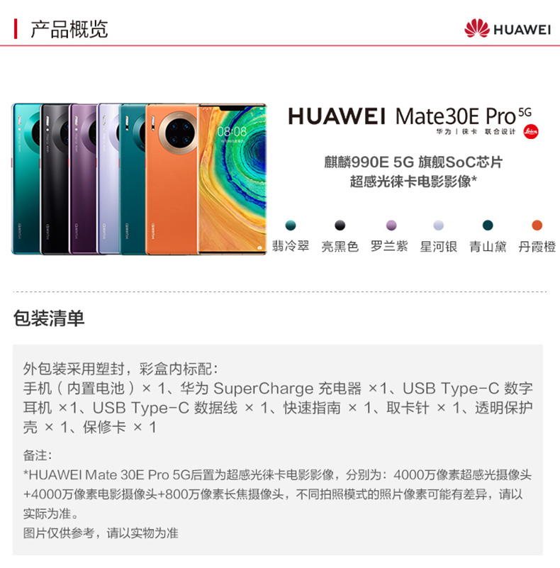 华为/HUAWEI Mate 30E Pro 5G麒麟990E 5GSoC芯片超感光徕卡