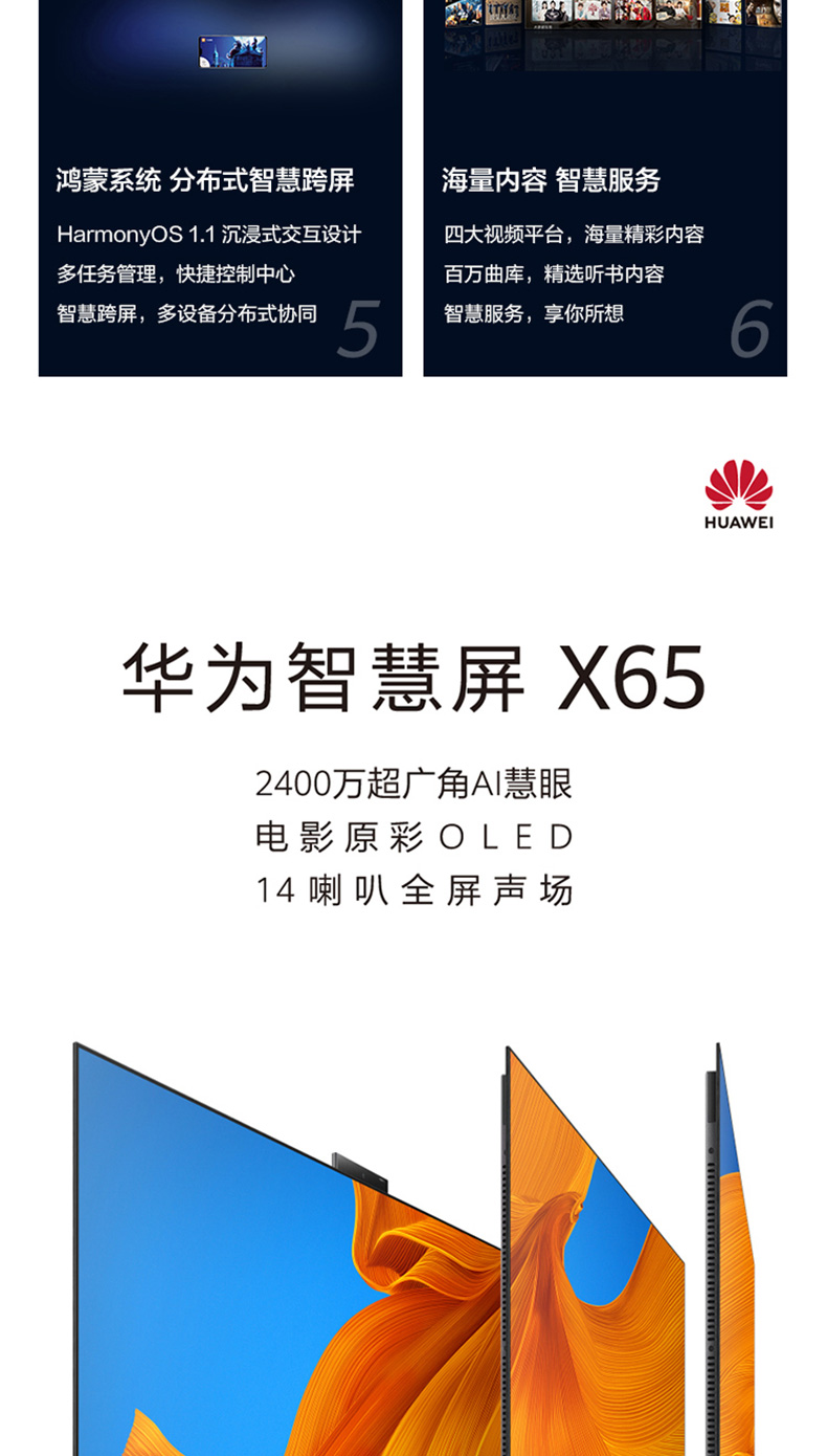 华为智慧屏X65 65英寸OLED智能电视 4K超高清