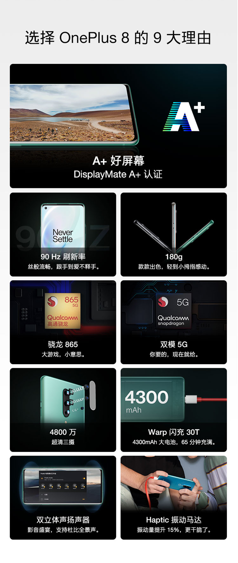 一加OnePlus 8 5G旗舰90Hz柔性屏手机骁龙865 180g轻薄手感