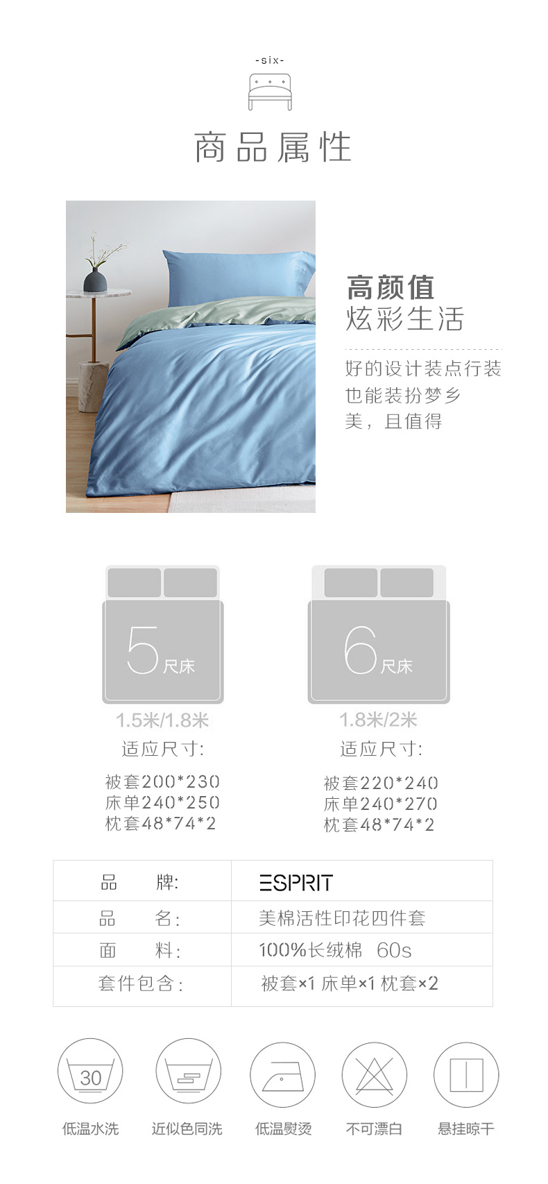 ESPRIT四件套全棉纯棉夏季60s裸睡高端床上用品家纺轻奢欧式套件
