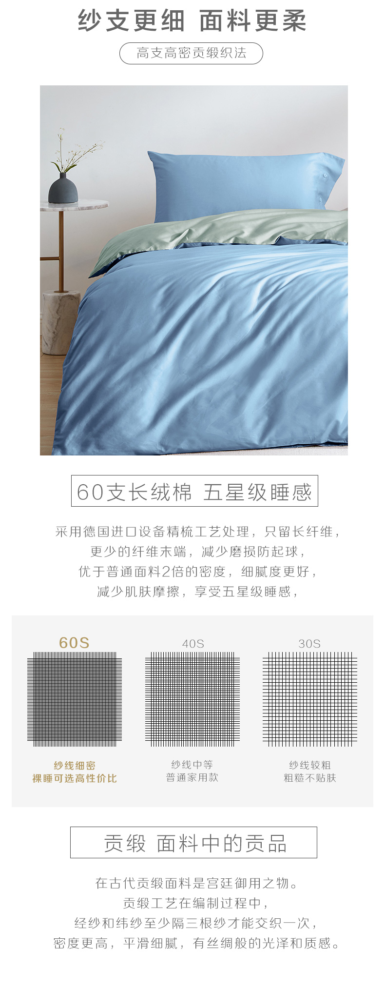 适用床尺寸: 1.5m(5英尺)床 适合200*230被芯 1.8m(6英尺)床 适合220*240被芯