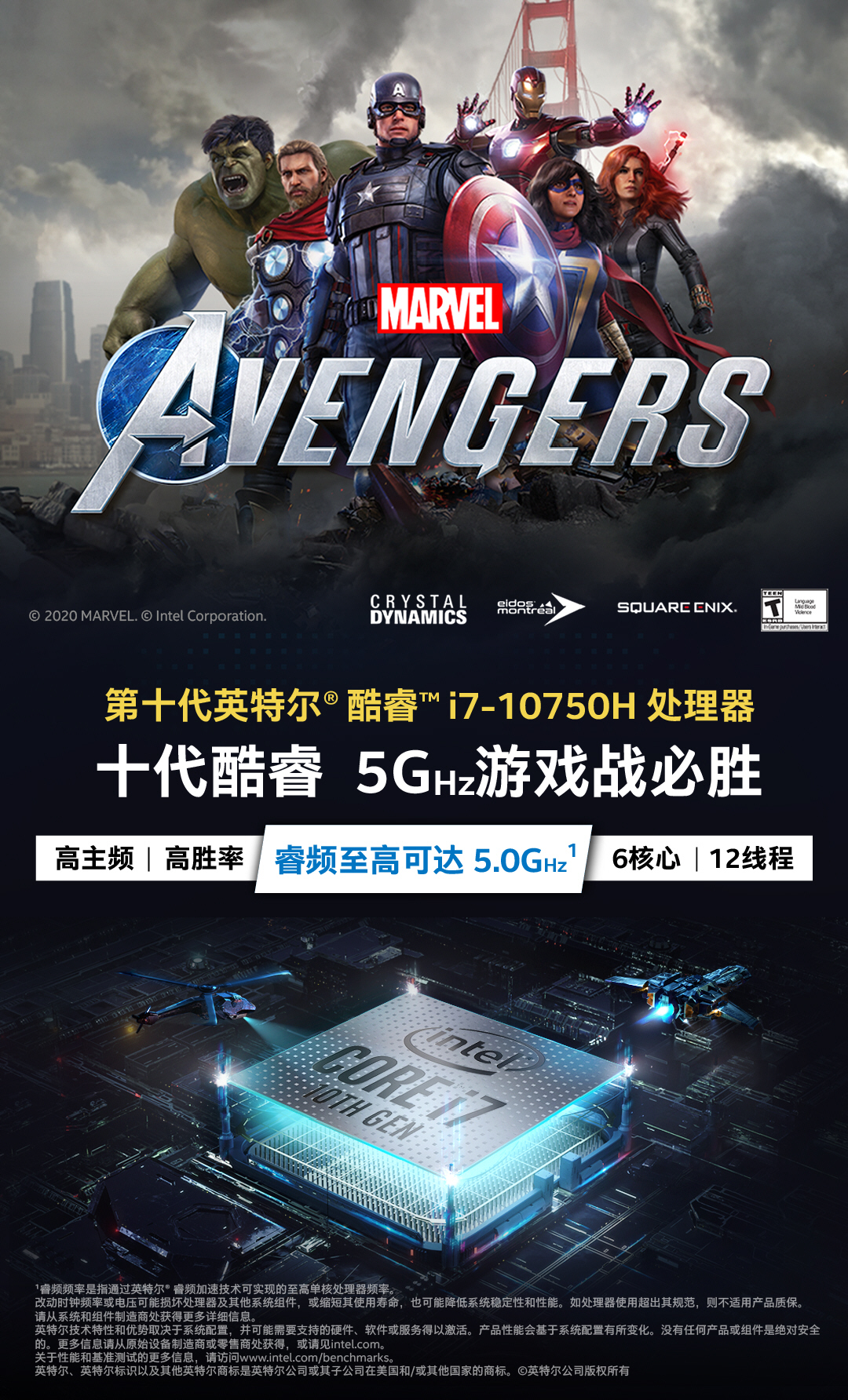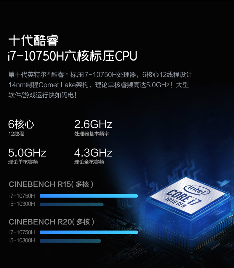 第十代英特尔® 酷睿 ™ i7-10750H 标压处理器,六核十二线程,