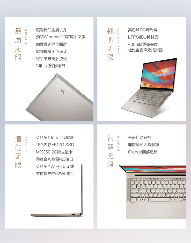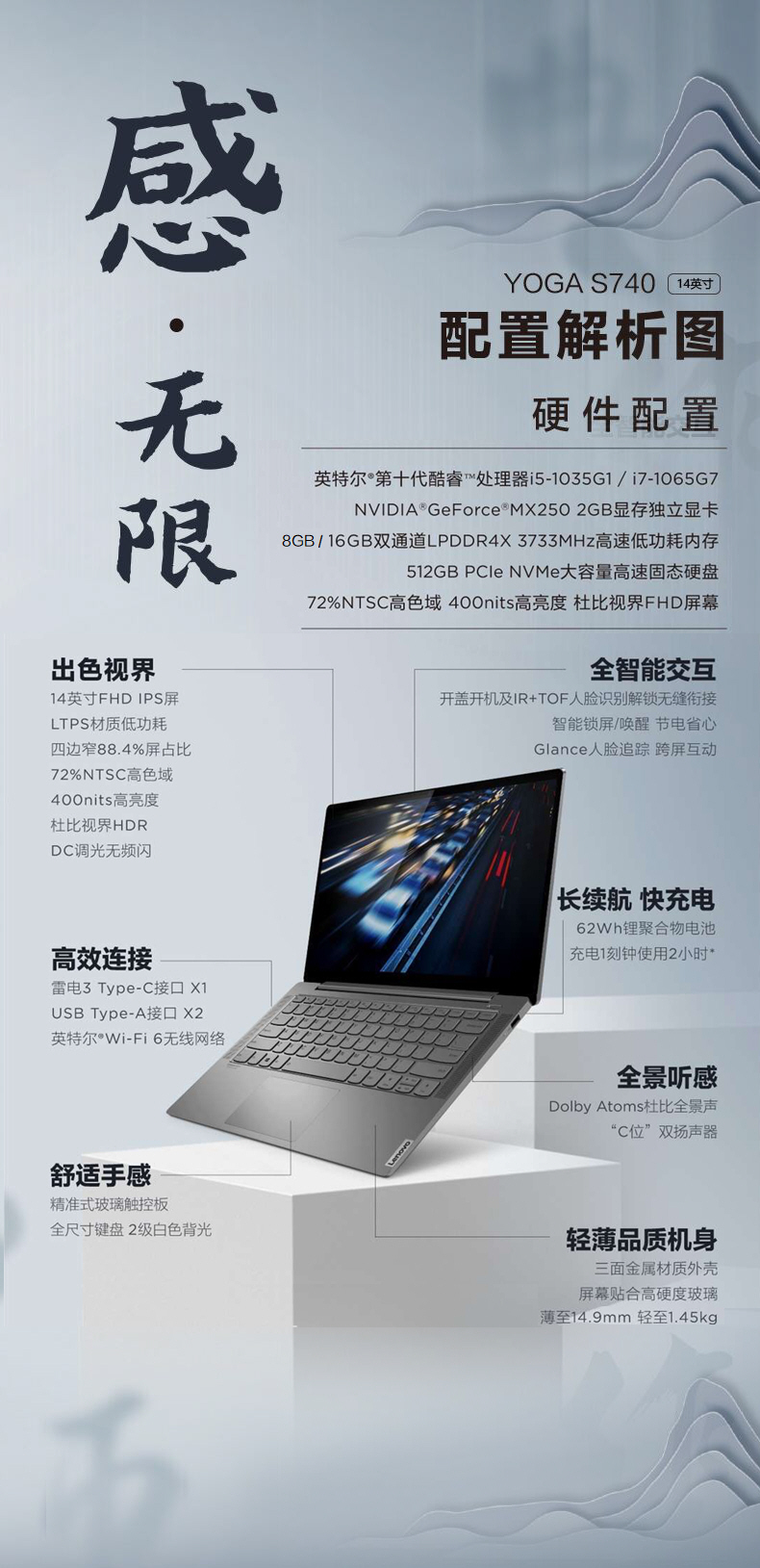 联想Yoga S740 英特尔酷睿i5 14英寸笔记本电脑轻薄本办公网课电脑i5-1035G1/16G/512G/独显